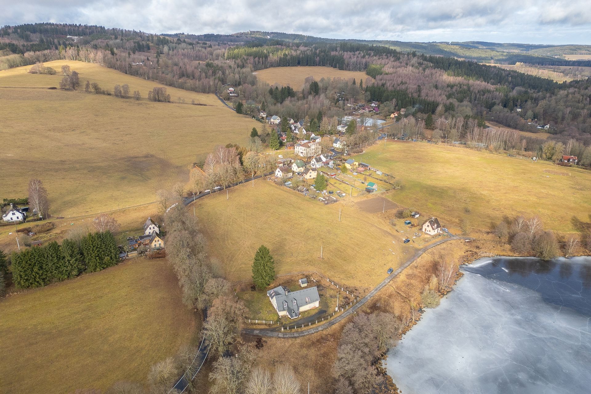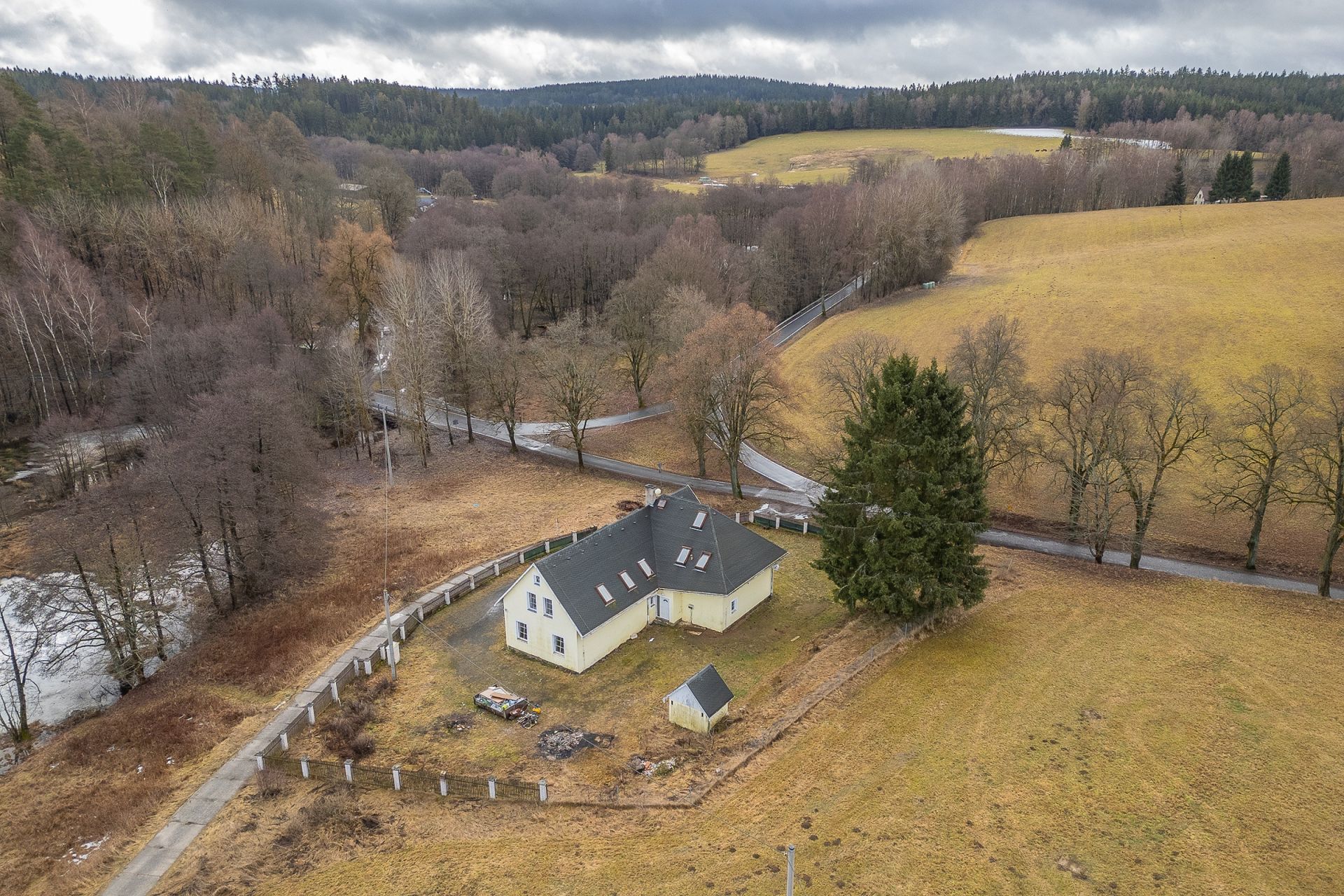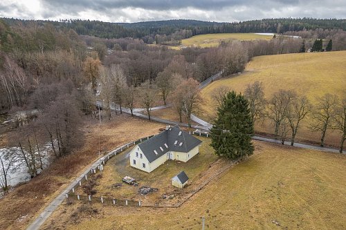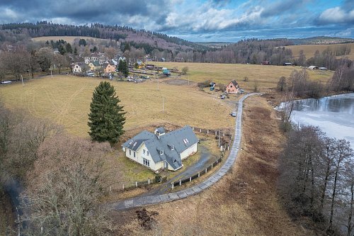 Nabízím k prodeji velký rodinný dům ve Vernéřově u Aše s užitnou plochou 357 m2, zasazený na rozlehlém pozemku o výměře 12 951 m2 v malebné krajině pouhé 4 km od města Aše a nedaleko hranic s Německem. Nemovitost leží na výjimečném místě přímo u rybníka, obklopená přírodou, což z ní činí ideální volbu pro klidné rodinné bydlení, vícegenerační soužití či rekreační objekt s výrazným potenciálem. Dům je určen ke kompletní rekonstrukci, a nový majitel si jej tak může přetvořit přesně podle svých představ a potřeb. K dispozici je vlastní čistička odpadních vod, pitná voda z kopané studny, vytápění elektrickým kotlem nebo kotlem na tuhá paliva a ohřev vody zajišťuje bojler. Pokud hledáte prostor, soukromí a jedinečné místo v přírodě s velkorysým pozemkem, tato nabídka představuje mimořádnou příležitost k investici i vysněnému bydlení.